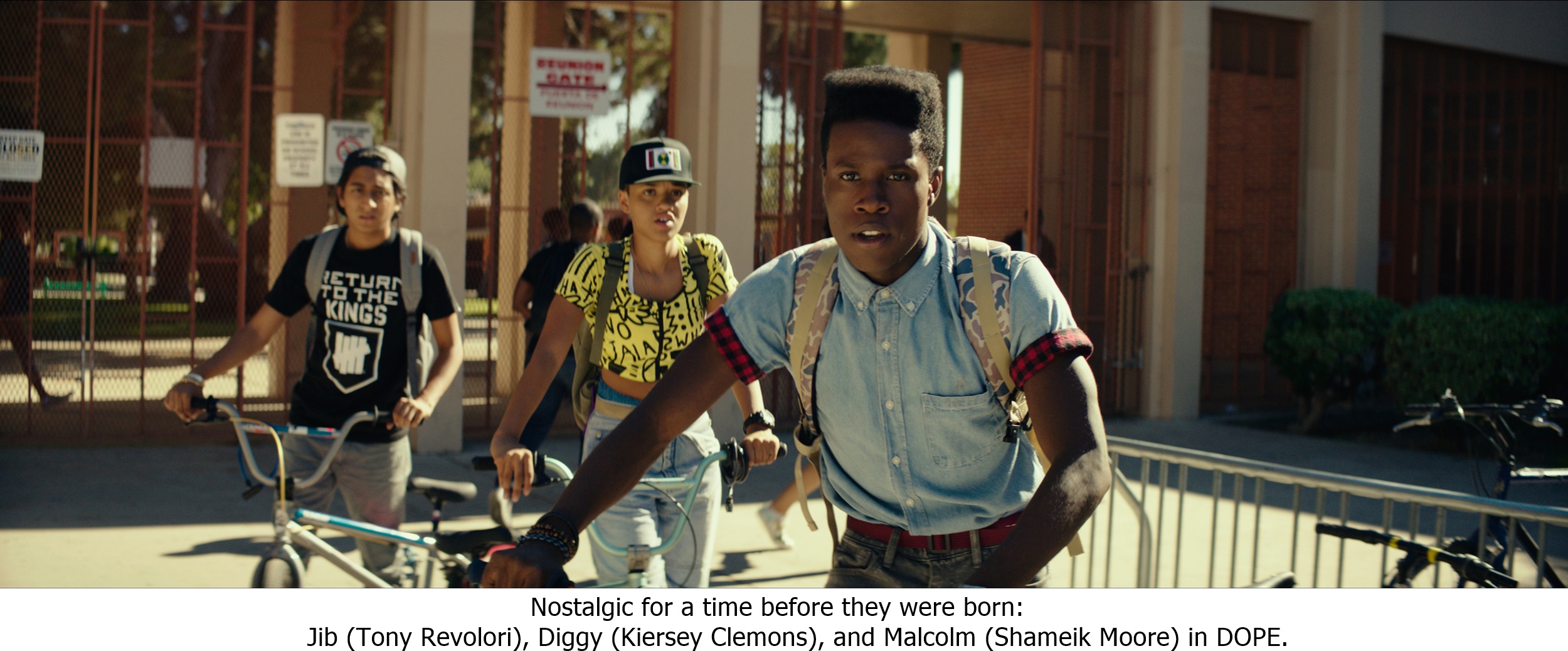 Gangs and drugs are part of life in the Bottoms, but lifelong friends Malcolm (Shameik Moore), Diggy (Kiersey Clemons), and Jib (The Grand Budapest Hotel’s Tony Revolori) ignore that world as much as they can. They are a self-contained unit dedicated to all things ‘90s, particularly hip hop. They are college-bound kids and Malcolm is determined to get into Harvard. It is a dream firmly within his grasp until Malcolm’s crush on Nakia (Zoë Kravitz) leads him and his friends to step out of their comfort zone and attend drug dealer Dom’s (A$ap Rocky) birthday party. By the end of the evening, they are in possession of a backpack full of molly, squeezed by both Dom’s allies and rivals and petrified of being caught with the stuff by the cops.