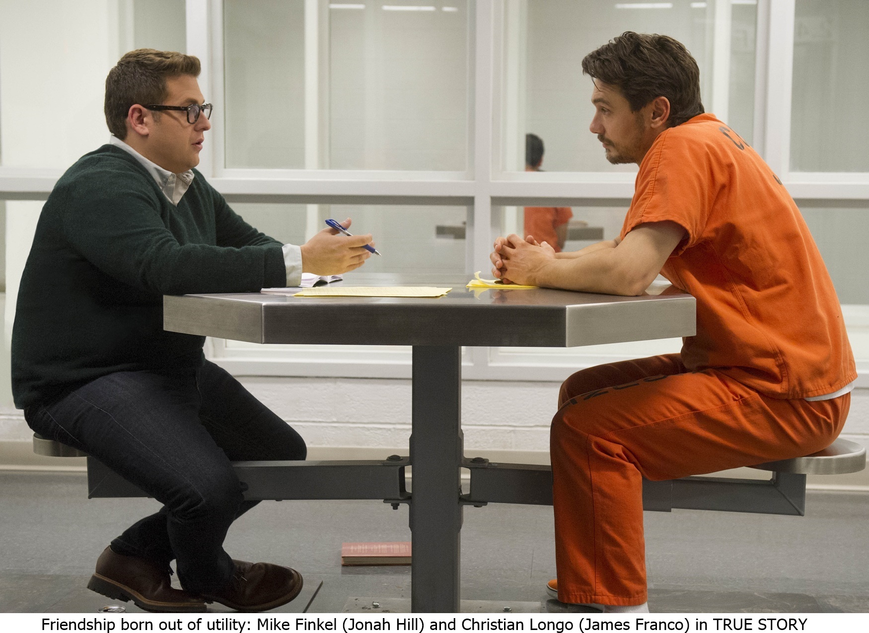 Hill’s baby face, large blue eyes behind thick glasses, and Finkel’s gentle (if arrogant) demeanor suggest someone who could be duped, but is he really? The real Finkel has suggested that he became too involved in the story, but would that really make him buy into Longo’s version of events as much as he does? True Story’s major flaw is that while Longo comes into sharp focus, Finkel never does. That’s a limitation perhaps in adapting FInkel’s book, but it would have made for a sharper, richer drama if Goold and his co-screenwriter David Kajganich had thought more about what motivated Finkel. The man fired by The New York Times for writing fiction titled his comeback True Story, but is it? Is this a story of one man’s heinous crimes leading to another man’s redemption or is it a tale of two unreliable narrators seeing in each other the means to an end? –Pam Grady